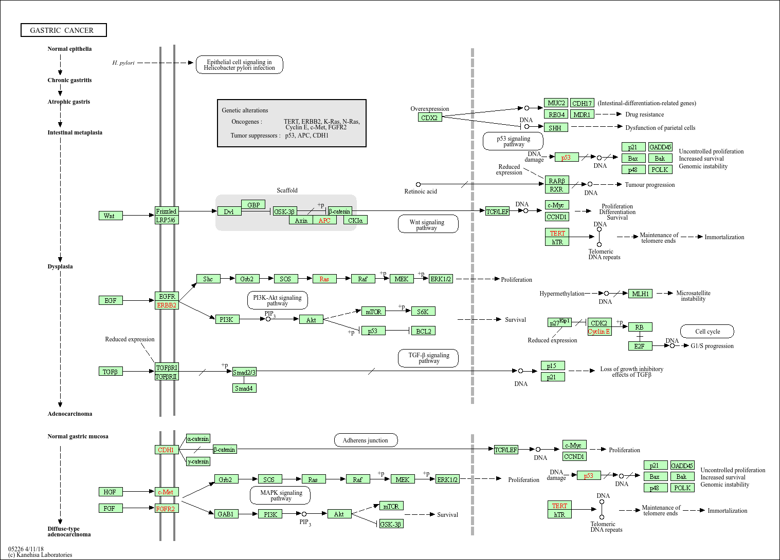 基础研究核心:围绕幽门螺杆菌(Hp)感染诱导的炎症微环境、上皮 - 间质转化(EMT)机制,以及 EGFR、c-Met 等受体酪氨酸激酶的异常激活,探索 CDH1(E - 钙黏蛋白)失活导致的细胞黏附紊乱与侵袭转移关联。